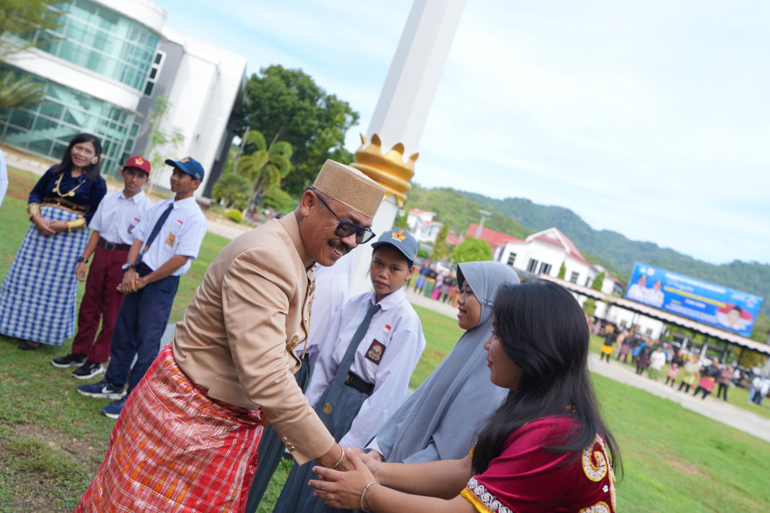 Gubernur Sulawesi Barat, Suhardi Duka (SDK), yang bertindak sebagai pembina upacara, menyampaikan dua hal penting yang menurutnya harus menjadi perhatian serius demi menjaga integritas dunia pendidikan.