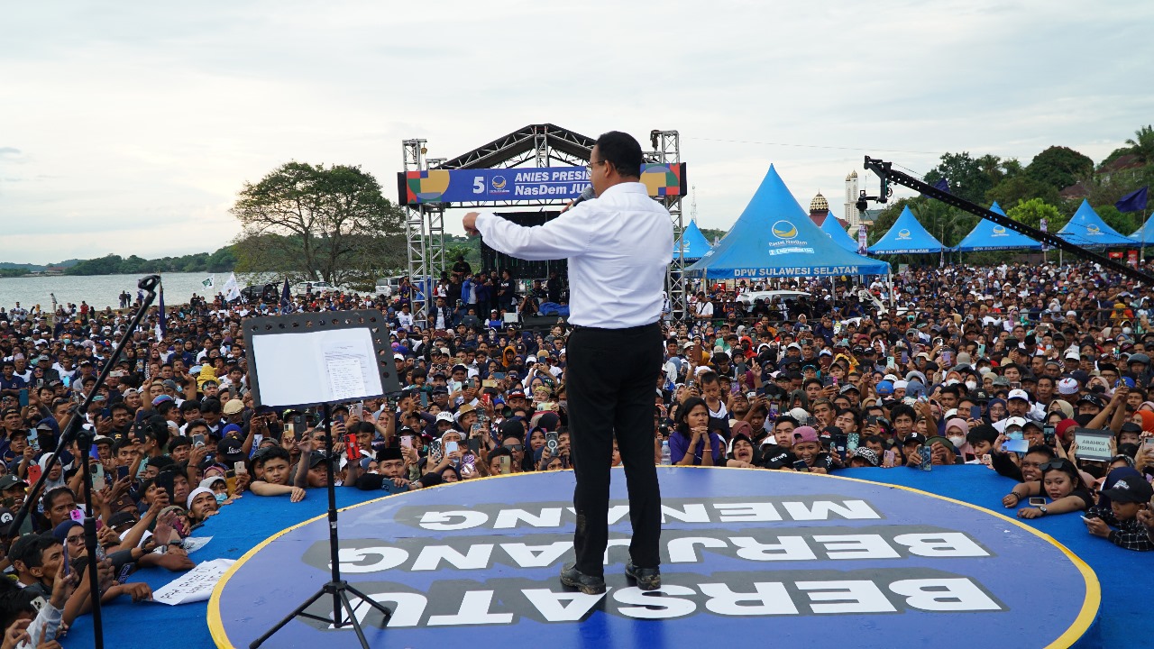 SUARACELEBES.COM, MAKASSAR – Calon Presiden nomor urut 01 Anies Baswedan melanjutkan kampanye akbar di Kota Parepare, Sulawesi Selatan. Dalam kampenye tersebut, antusiasme warga Parepare membeludak memenuhi lapangan, Salasa (06/02/2024).