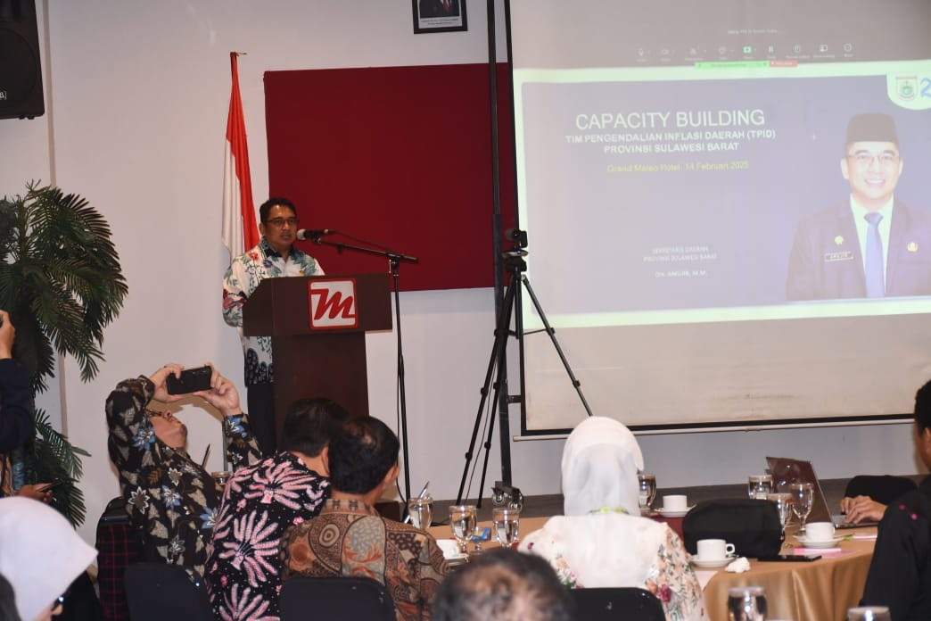 SUARACELEBES.COM, MAMUJU – Pj Sekprov Sulbar, Amujib membuka acara capacity building pejuang tim Pengendalian Inflasi Daerah (TPID) dan bimbingan teknis penyusunan laporan evaluasi kinerja TPID, Jumat 14 Februari 2025.
