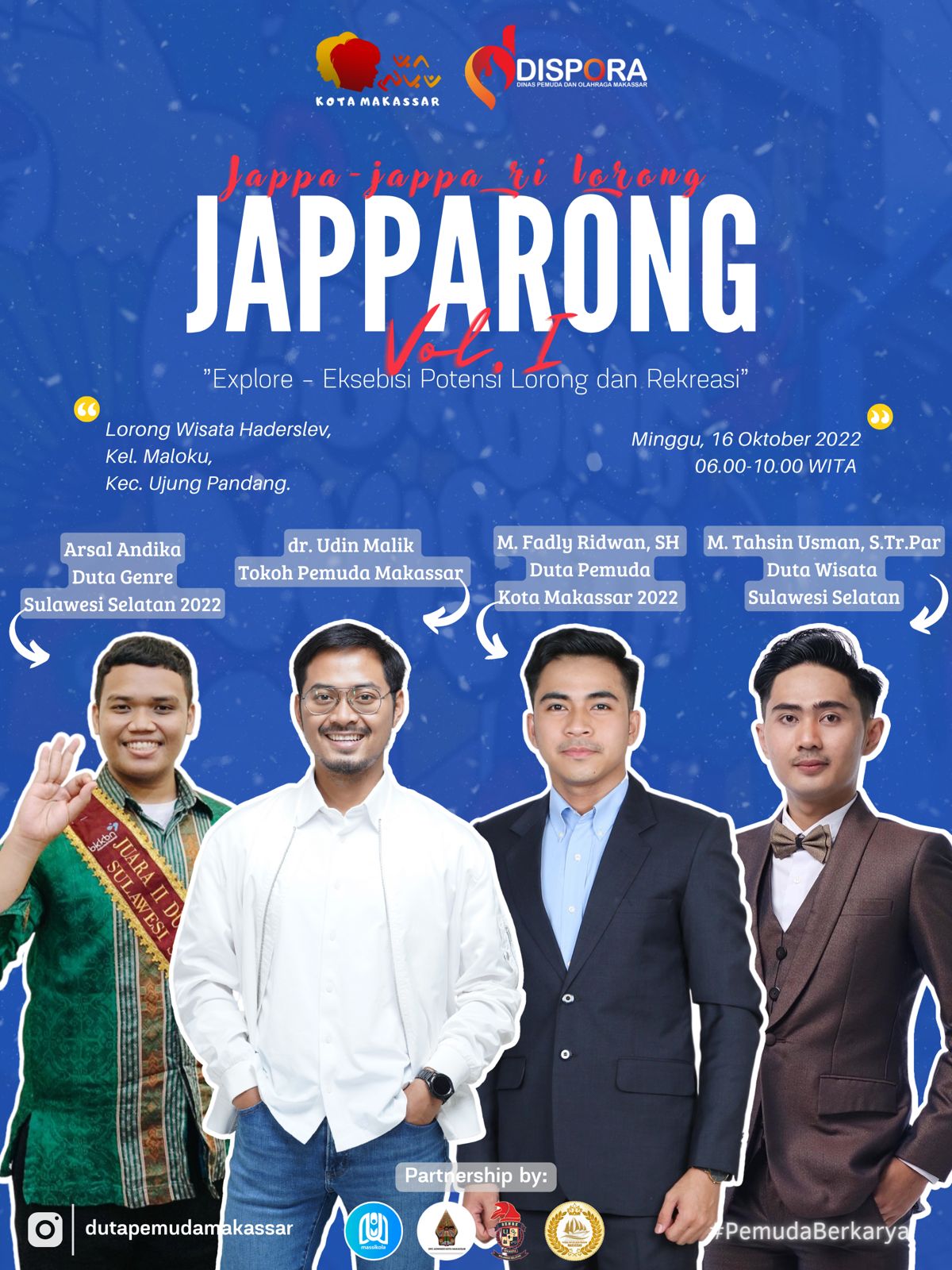 Melalui Japparong (Jappa-Jappa ri Lorong), Dispora mengajak masyarakat jelajahi potensi Lorong Wisata Haderslev, di Kelurahan Maloku, Kecamatan Ujung Pandang, Minggu (16/10/2022).