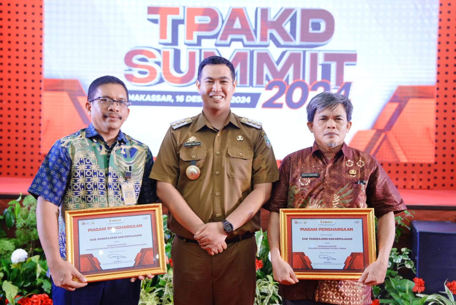 Pangkep mendapat penghargaan TPAKD Pelaksanaan Literasi dan Inklusi Keuangan Terbaik tahun 2024 kategori Implementasi Program TPAKD Pengembangan Ekonomi Daerah dan Kategori Implementasi Program Layarku Terbaik.