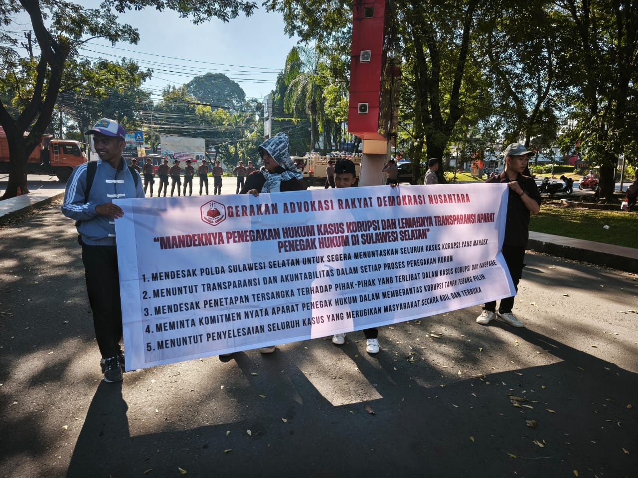 Dalam pernyataan sikapnya, massa membawa sejumlah poin tuntutan utama: mendesak Polda Sulsel segera menuntaskan korupsi DAK Parepare dan memeriksa pihak-pihak terkait, termasuk eks Wali Kota Taufan Pawe. Selain itu, mereka juga menuntut transparansi penuh atas progres penyidikan dan penggeledahan kasus yang merugikan keuangan negara tersebut.