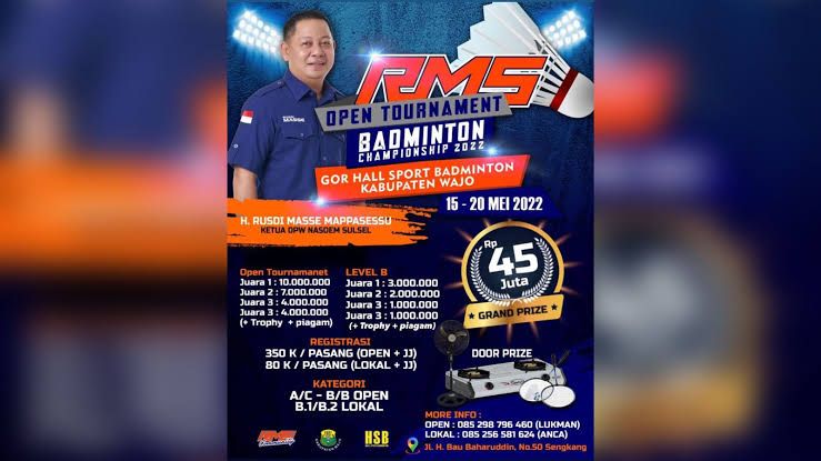 Kegiatan RMS Badminton Cup ini digelar kerjasama antara RMS Community dengan Persatuan Bulu Tangkis Seluruh Indonesia (PBSI) Kabupaten Wajo.