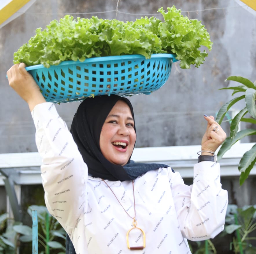 “Disini tanamannya seperti selada diperjual belikan. Jadi semangat ibu tani lorong ini sangat baik. Dan hari ini saya bersama ibu-ibu tani memanen selada,” ucapnya.