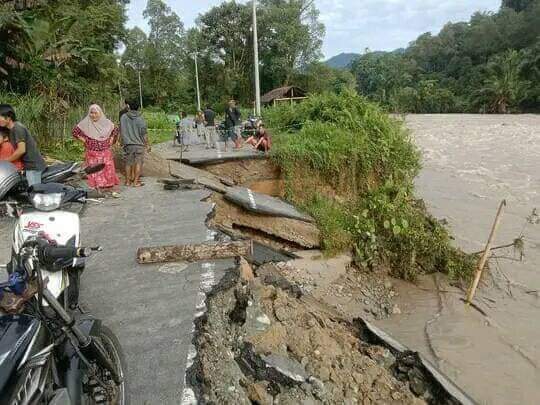 Kondisi jalan yang ada di lokasi tersebut sudah tidak dapat lagi dilalui oleh kendaraan roda empat, hanya kendaraan roda dua yang bisa melintas di jalan ini.